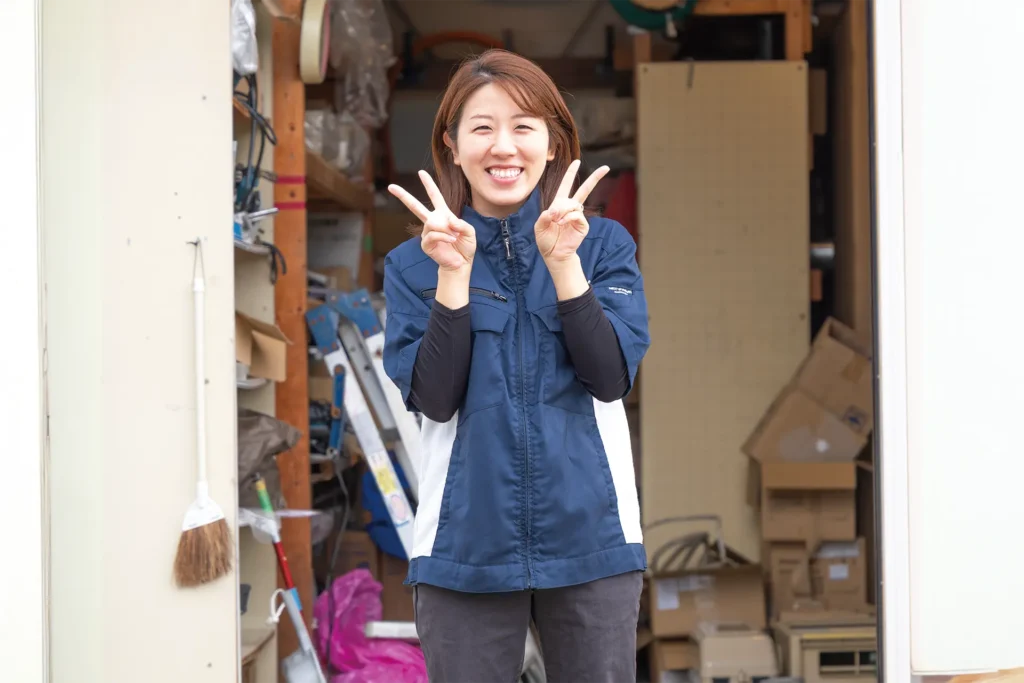 私は社長案件と、担当するハウスメーカー様の工事に関する事務作業を行っています。具体的な業務内容としては、見積、請求処理、保険関係、対外的な取引対応、工事を行う住宅の電力申し込み、工事に使用する器具の注文などです。ときには現場に出て、かんたんな軽作業を行うこともあります。工事内容を担当に伝え、相談に乗り、見積や請求金額UPができたときには、達成感を感じます。